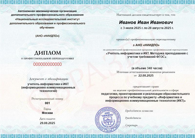 Да, документы оформляются на бланках с защитой от подделок, заполняются на русском языке, в них ставится печать АНО «НИИДПО».