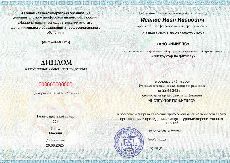 Да, документы оформляются на бланках с защитой от подделок, заполняются на русском языке, в них ставится печать АНО «НИИДПО».