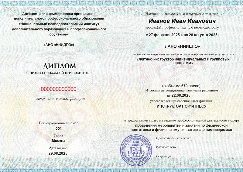 - Предоставить возможность освоить востребованную профессию фитнес-инструктора и получить квалификацию, признанную на рынке труда.