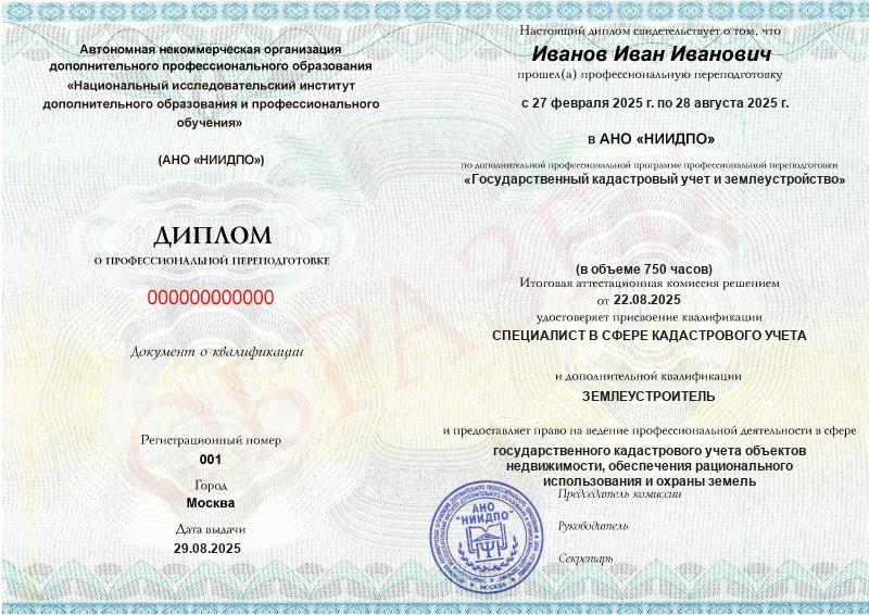 • 2 квалификации: Специалист в сфере кадастрового учета + Землеустроитель
