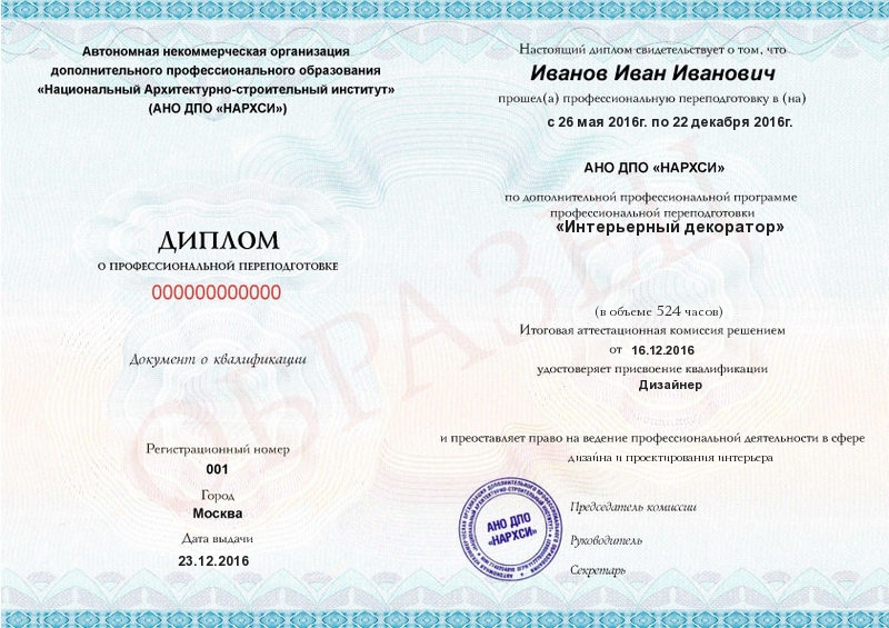 Согласно закону, дипломы о профпереподготовке могут быть оформлены в порядке, установленном образовательным учреждением (пункт 19 Порядка организации и осуществления образовательной деятельности по ДПП). Образцы квалификационных документов размещены на сайте нашей образовательной организации.