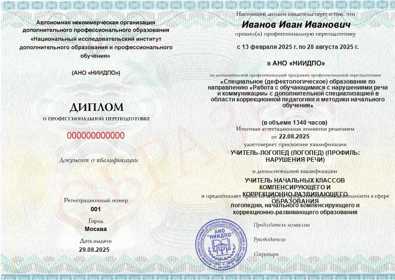 Специальное (дефектологическое) образование по направлению «Работа с обучающимися с нарушениями речи и коммуникации» с дополнительной специализацией в области коррекционной педагогики и методики начального обучения (1340ч)