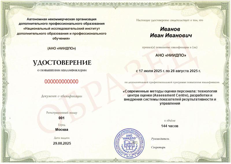 Обзор программы повышения квалификации «Современные методы оценки персонала: технология центра оценки (Assessment Centre), разработки и внедрения системы показателей результативности и управления по целям (Management by Objectives)»