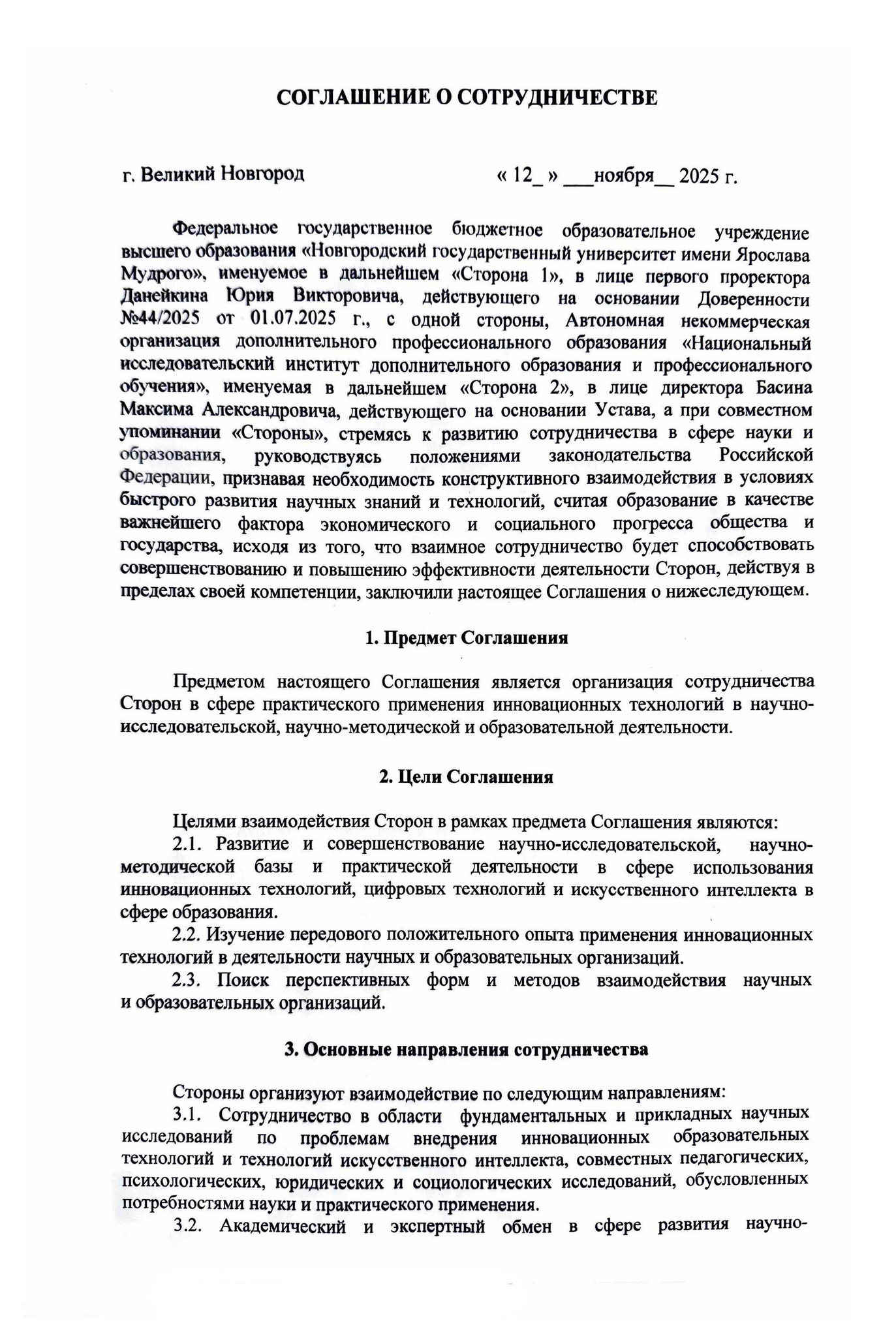 Соглашение между НовГУ и АНО «НИИДПО»
