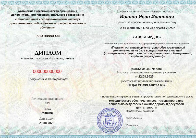 Обзор программы профессиональной переподготовки «Педагог-организатор культурно-образовательной деятельности на базе концертных организаций (филармоний, концертных залов, концертных объединений, клубных учреждений)» с присвоением квалификации «Педагог-организатор»