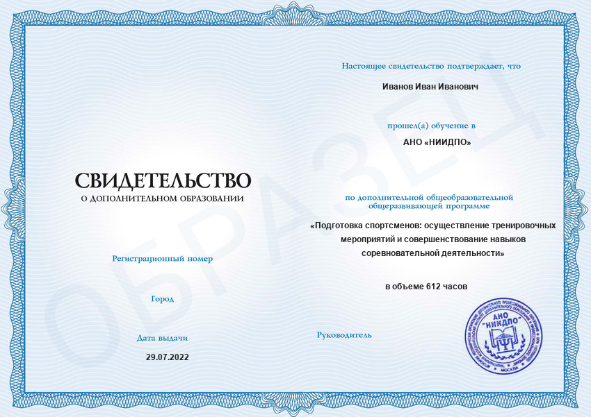 Да, документы оформляются на бланках с защитой от подделок, заполняются на русском языке, в них ставится печать АНО «НИИДПО».