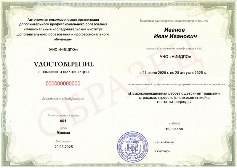 Психокоррекционная работа с детскими травмами, страхами, агрессией, психосоматикой в гештальт-подходе (108ч)