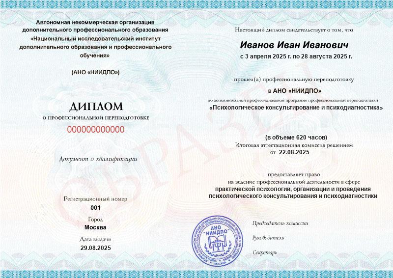 • Диплом о профессиональной переподготовке вносится в государственный реестр (ФИС ФРДО).