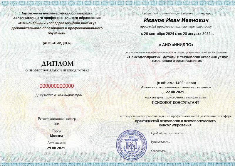 Психолог-практик: методы и технологии оказания услуг населению и организациям (1490ч)
