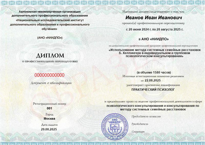 Диплом о профессиональной переподготовке после нашего обучения делает специалиста более авторитетным в глазах клиентов и коллег и позволяет успешно строить практику.