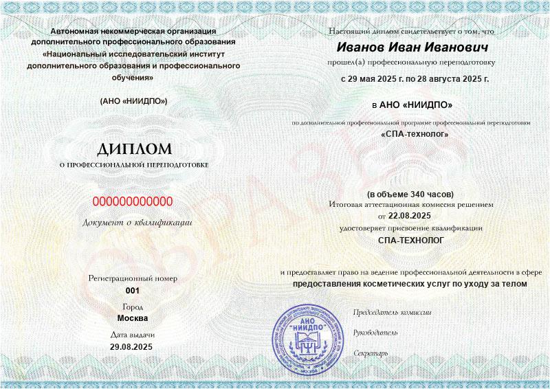 Обзор программы профессиональной переподготовки «СПА-технолог» с присвоением квалификации «СПА-технолог»
