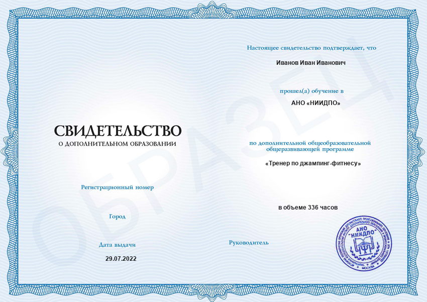 Курс по джампингу для тренеров можно пройти дистанционно. Профессиональная переподготовка позволяет стать востребованным специалистом в быстро развивающемся сегменте фитнес-индустрии и работать в клубах и спортивных центрах. По завершении программы вы получите диплом, который подтвердит вашу квалификацию