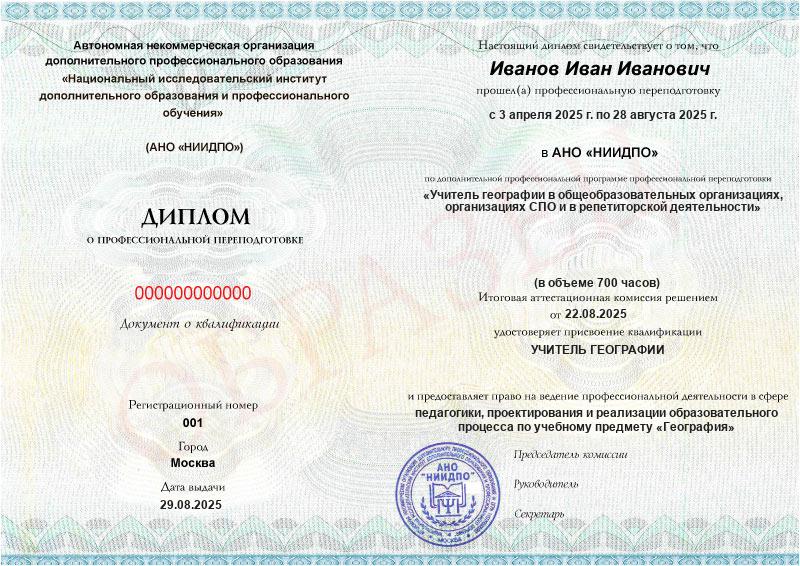 Учитель географии в общеобразовательных организациях, организациях СПО и в репетиторской деятельности (700ч)