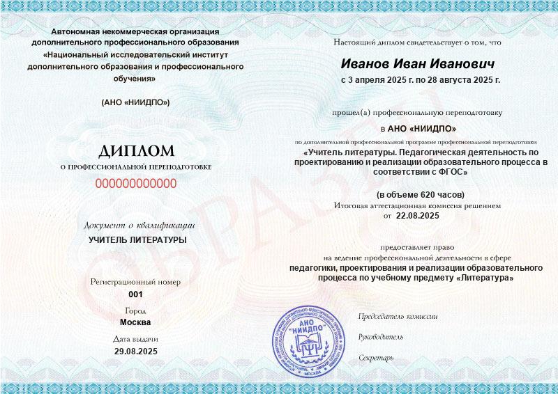 Студент, желающий поступить в АНО «НИИДПО», должен предоставить справку из образовательной организации. Независимо от срока окончания обучения по программе дополнительного образования, диплом о профпереподготовке выдаётся только после предъявления документа о получении среднего профессионального или высшего образования.