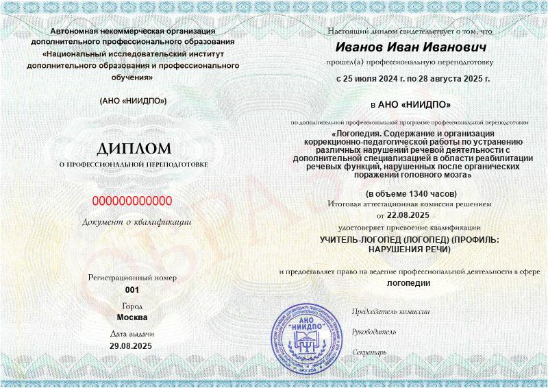 Логопедия. Содержание и организация коррекционно-педагогической работы по устранению различных нарушений речевой деятельности с дополнительной специализацией в области реабилитации речевых функций, нарушенных после органических поражений головного мозга (1340ч)