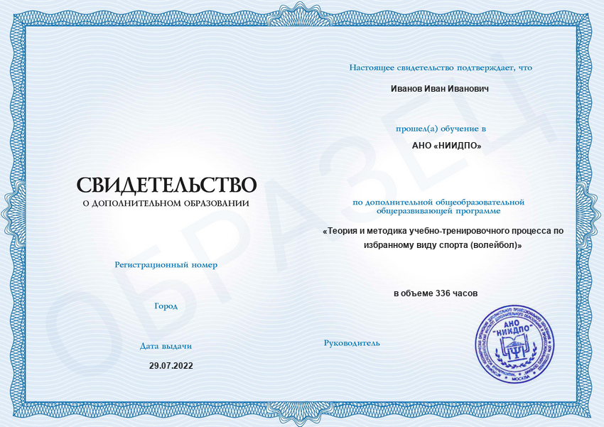Обзор программы профессиональной переподготовки «Теория и методика учебно-тренировочного процесса по избранному виду спорта (волейбол)» с присвоением квалификации «Тренер по волейболу»